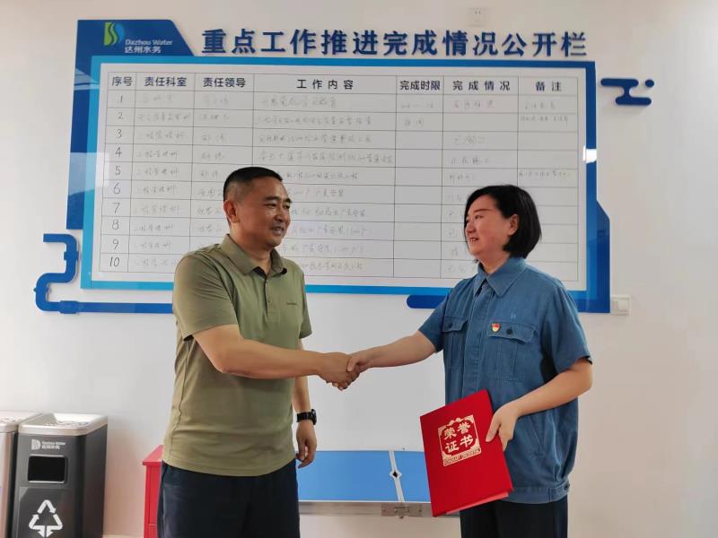 支部聯(lián)系領(lǐng)導(dǎo)向獲2024年集團(tuán)公司優(yōu)秀共產(chǎn)黨員及優(yōu)秀黨務(wù)工作者頒發(fā)榮譽(yù)證書(shū),向受到表彰的優(yōu)秀個(gè)人送上熱烈祝賀,也希望獲獎(jiǎng)同志能夠更好發(fā)揮黨員先鋒模范作用,全體黨員要以先進(jìn)典型為榜樣,向優(yōu)秀代表看齊,在創(chuàng)建高質(zhì)量達(dá)州水務(wù)新征程上彰顯更強(qiáng)擔(dān)當(dāng)、展現(xiàn)更大作為。