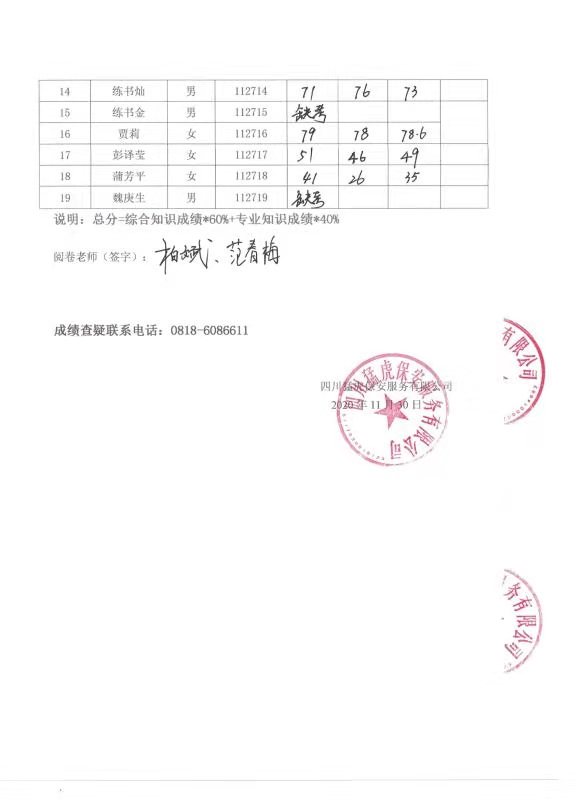 標(biāo)題:達(dá)州市匯泉環(huán)境管理有限公司2020年從業(yè)人員公開招聘參加筆試成績公示