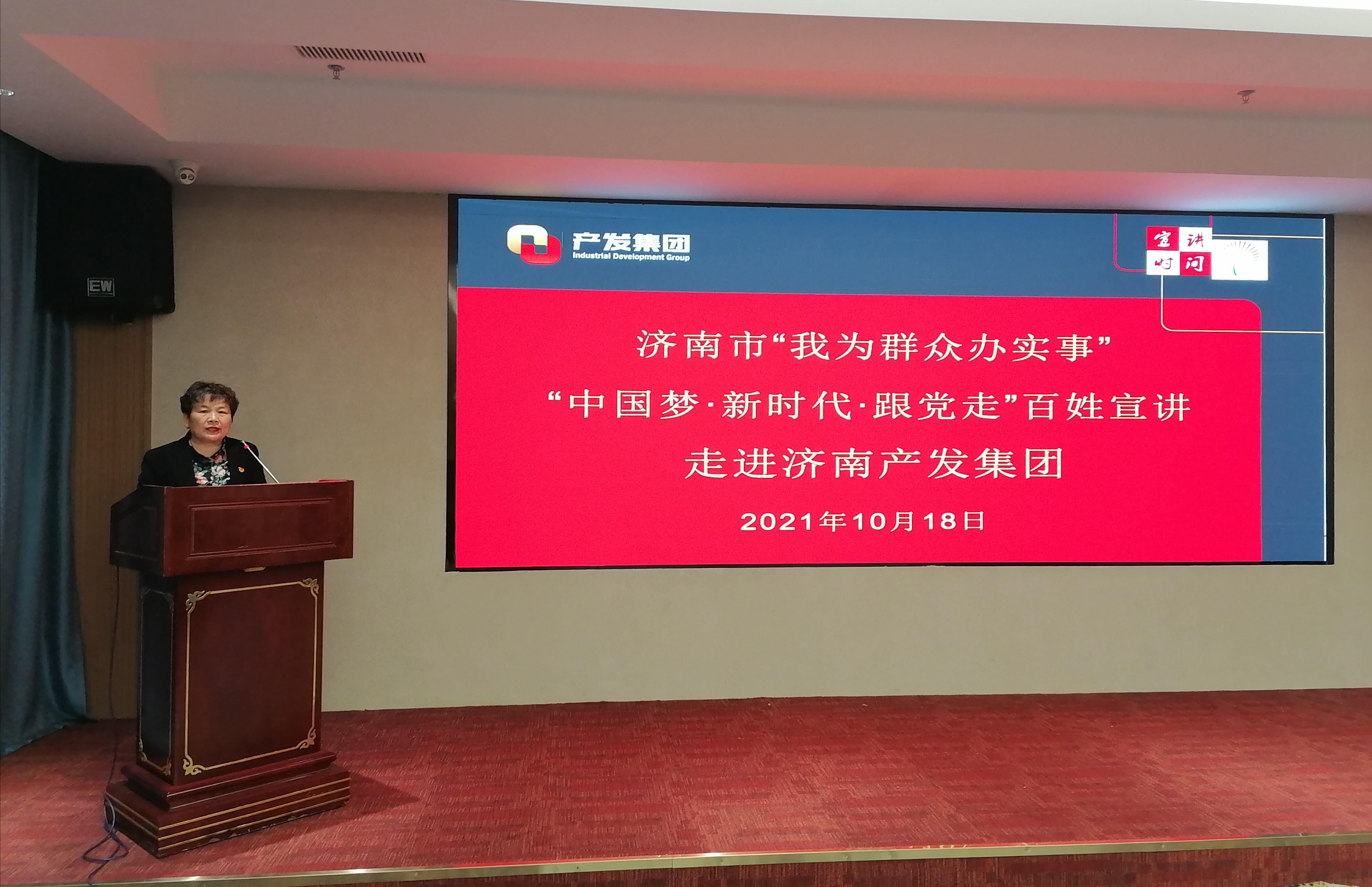 為深入貫徹落實習近平總書記“七一”重要講話精神,扎實推進黨史學習教育“我為群眾辦實事”活動,10月18日下午,濟南市“我為群眾辦實事”“中國夢·新時代·跟黨走”百姓宣講活動走進濟南產(chǎn)發(fā)集團。在市委講師團副處級干部呂桂紅的率領下,“我為群眾辦實事”百姓宣講團的6位宣講員用他們的親歷、親聞、親為,為產(chǎn)發(fā)集團50余名參會干部職工講述“聽黨話、跟黨走、率先垂范、主動擔當、無私奉獻”的動人故事。
